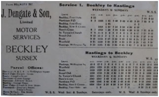 Fourteen years passed before a regular bus service through the Village came into operation after World War I. Dengates of Beckley founded in 1919 were responsible for this and they ran a regular hourly service up until 15 May 1967. From 1923 the situation changed again with the Maidstone & District Bus Company competing for passengers. The hourly service did not alter, however, as the two buses would arrive within ten minutes of each other! |