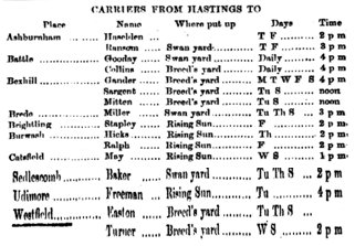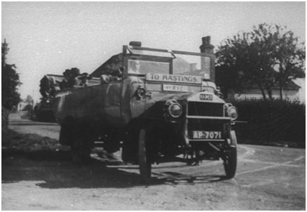 Public TransportThe only alternative to walking direct from the Village prior to 1919 was obtained, if there was sufficient room available, by a ride amongst parcels, goods, etc. which the local Carrier was transporting into Battle, Hastings or Rye – the nearest towns. Baker, Easton and Turner are a few of the names of those who operated as Carriers from this Parish. The turn of the century saw some improvement when Mr. Sutton with horsedrawn cart adapted for passengers, ran a service at 2d per passenger to link at the Harrow Inn with the circular tram operated by the Hastings Tramway Company from 31 July 1905. |